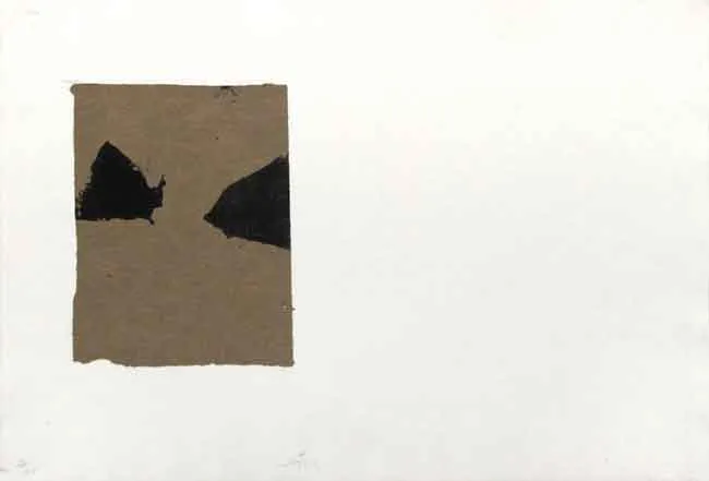 Litografía-collage en negro con papel de embalaje beige arrugado. La edición es de 135 ejemplares; consta de 40 ejemplares firmados y numerados 1/40-40/40, 70 ejemplares firmados y numerados del 41 al 110, 15 ejemplares firmados y numerados I/XV-XV/XV, y 10 ejemplares numerados de la A a la J reservados a los colaboradores. Editor: Sala Gaspar, Barcelona. Número de catalogación: 49. Catalogado en la página 40 de Tàpies. Obra Gráfica. Graphic Work. 1947-1972. Editorial Gustavo Gili. 1973.