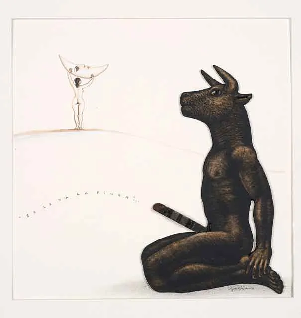 Técnica: Papel, demegrafía,esmalte,nogalina,madera y grafito