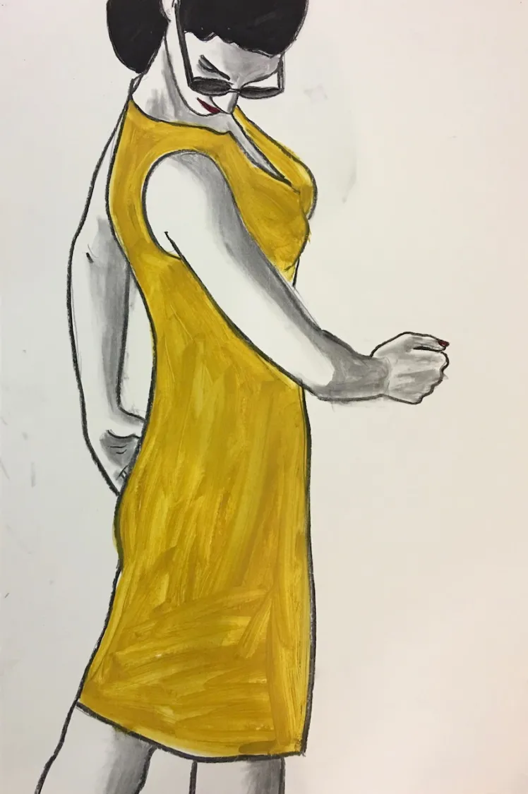 Técnica: Carbón vegetal y óleo sobre papel