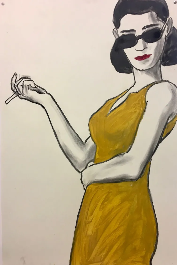 Técnica: Carbón vegetal y óleo sobre papel