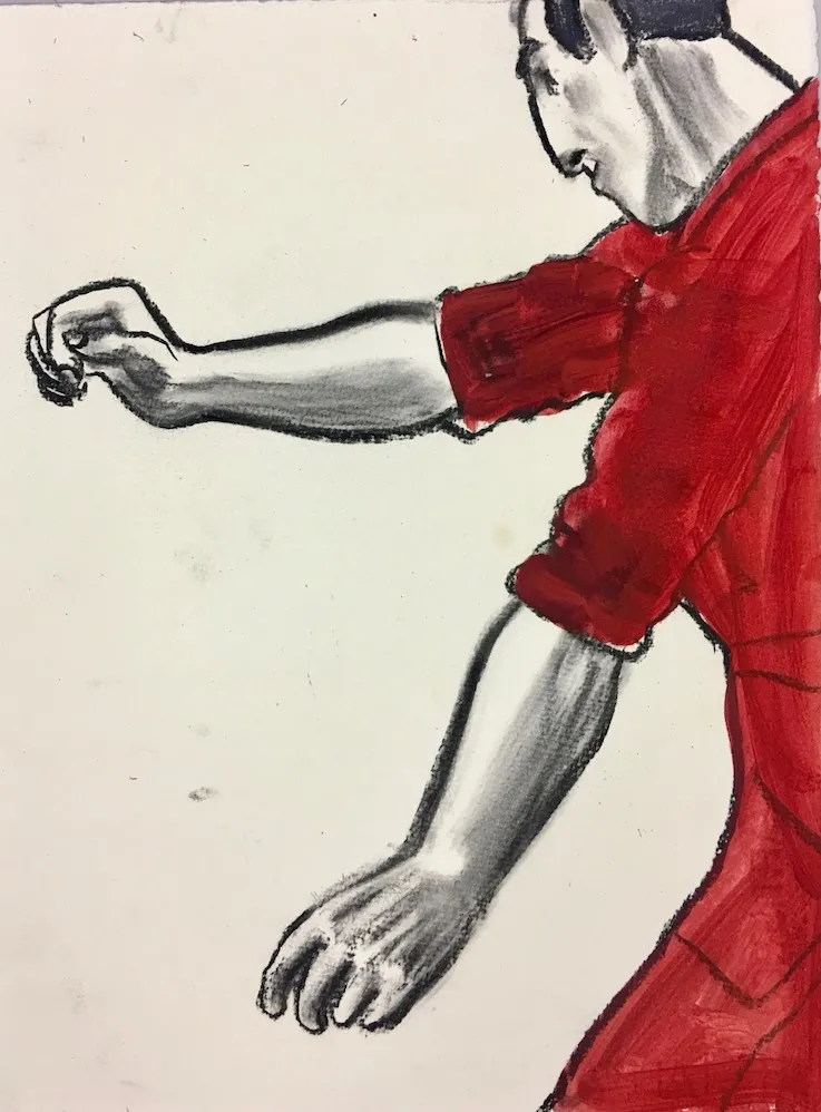 Técnica: Carboncillo y óleo sobre papel