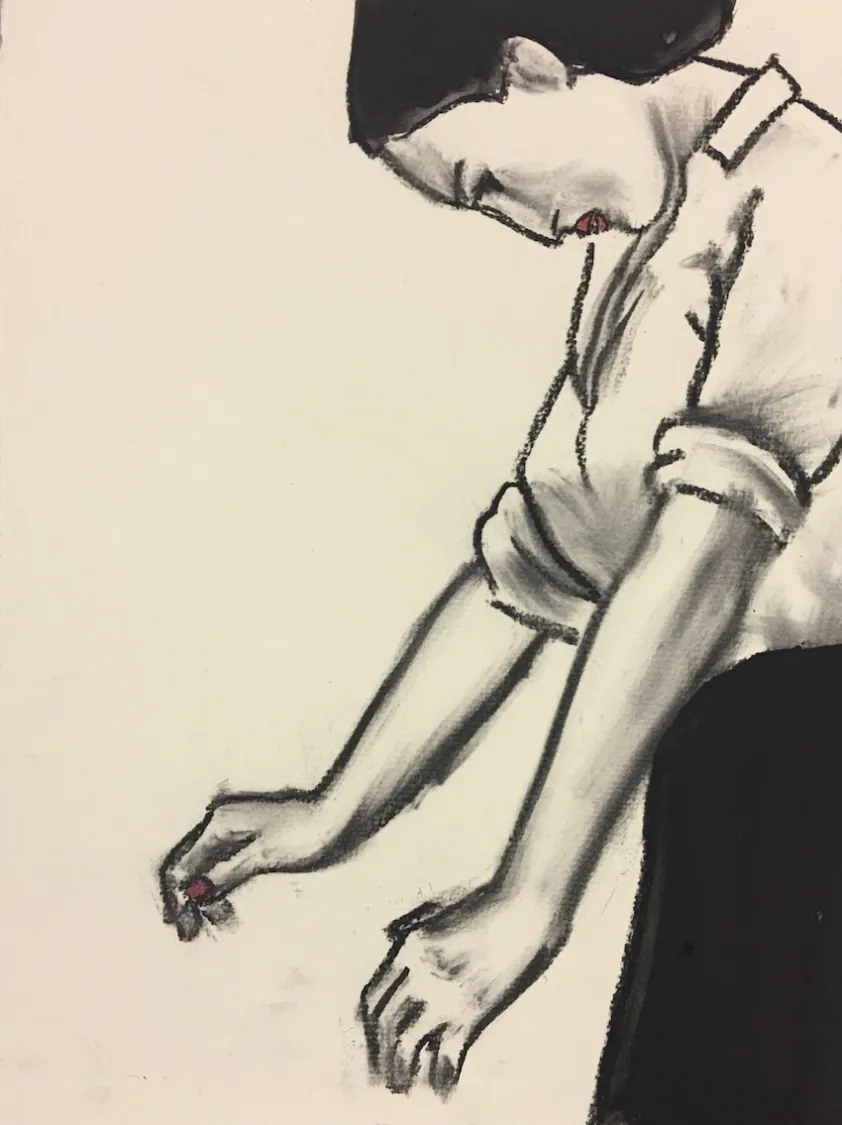 Técnica: carboncillo y óleo sobre papel