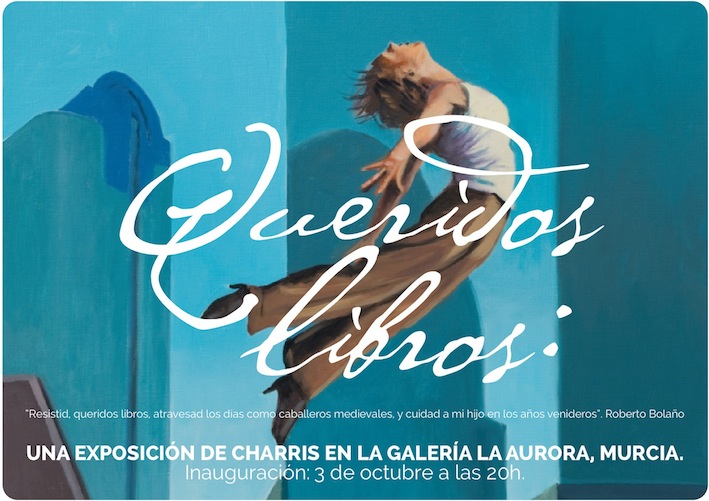 “Queridos libros” es una exposición que reúne, en la Galería La Aurora de Murcia, una amplia muestra de las interrelaciones de la pintura de Ángel Mateo Charris (Cartagena, 1962) con la literatura, los libros y sus autores. Desde sus inicios lo literario ha sido una fuente inspiradora para sus creaciones y a menudo sus exposiciones están unidos por una narración que da sentido y coherencia al conjunto, con catálogos (libros en algunos casos) que acaban formando parte integral del concepto, y textos escritos por el propio autor que refuerzan esta conexión entre arte y literatura. No en vano Juan Manuel Bonet ha dicho de él: “Uno de los pintores más literarios que conozco, y a la vez uno de los pintores más pintores. Aparente paradoja, que no lo es.”