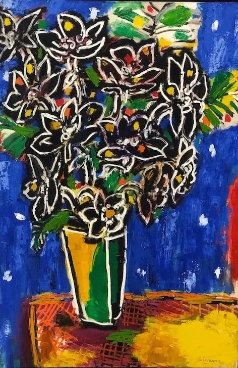 Titre: Flores sobre fondo azul